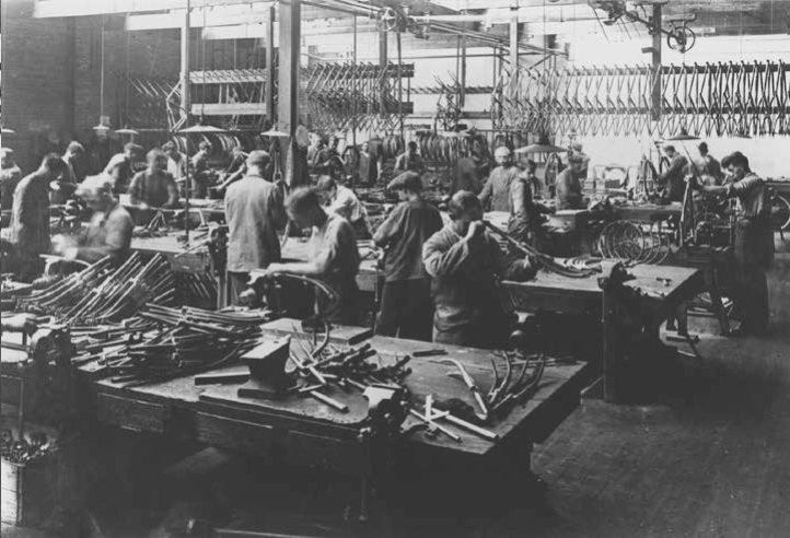 Production statistics from 1929 tallied 35 large manufacturers each with an average of 53 employees, and 58 firms overall making more than 500 bicycles a year. There were also over 200 smaller businesses, often repair shops assembling frames from imported parts packages. RIH was in the latter category, but with custom bicycle frame building being the priority and bike repairs squeezed in between.