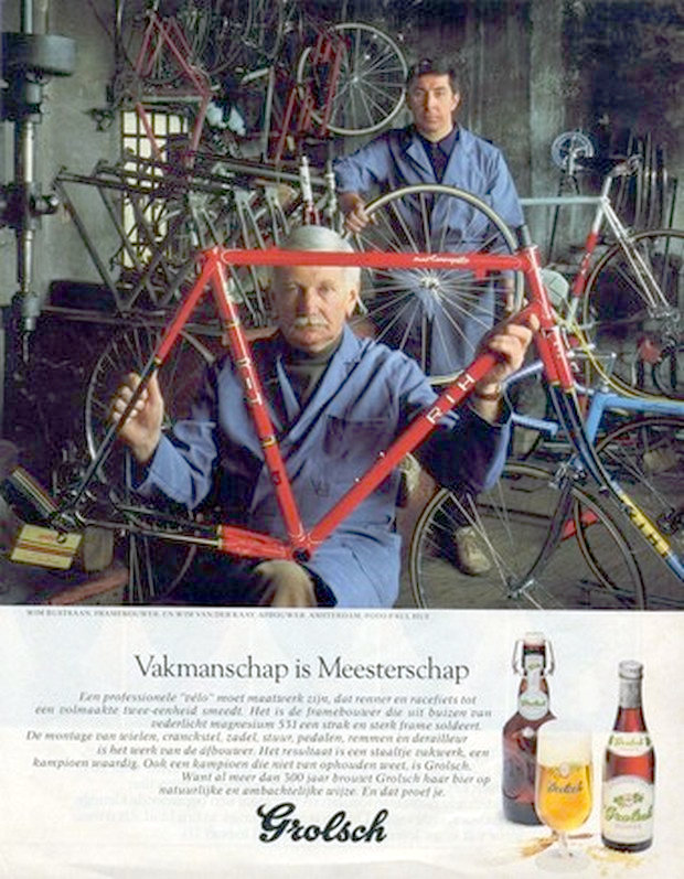 During this time brewer Grolsch featured RIH in their long-running Vakmanschap is Meesterschap (Craftsmanship is Mastery) advertising series. It featured contemporary Dutch masters pictured by the noted photographer Paul Huf. Two of the masters were Wim Jr. and Wim upstairs in the shop, posing together with a frame.