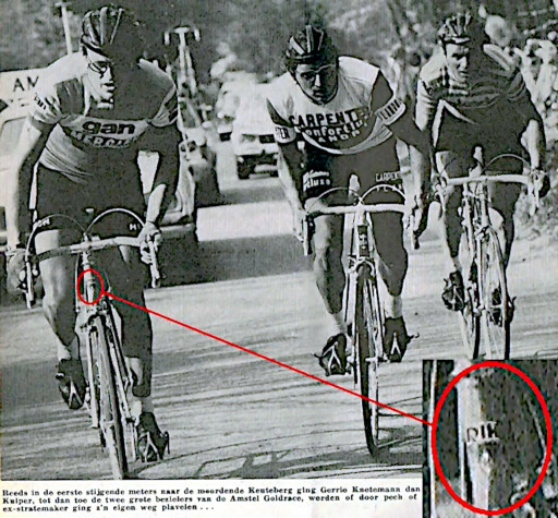 Gerrie Knetemann, another son of the hardscrabble Jordaan, frequented the neighborhood shop as a child and was loyal to RIH. He met his future wife at the shop. When Knetemann won the 1974 Amstel Gold race he was supposed to be riding a Mercier, but the head badge read RIH. Ten years later De Kneet won the Amstel classic again. Mercier was still his sponsor. This time the head badge read Mercier.