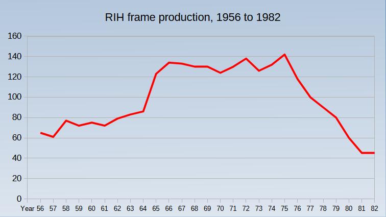 RIH was a two-man business crafting made-to-order bicycles for individual customers. Each bicycle carried a unique identification number stamped into its frame. The RIH Sport Amsterdam website provides valuable serial frame number card data covering 26 years from 1956 to 1982.